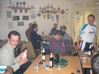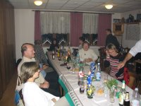Auf Grund der finaziellen Ausuferung der letztjährigen Weihnachtsfeier, hatten wir für 2003 beschlossen, die Räumlichkeiten unserer Trainingsbahn zu nutzen! Bei einem kalten u. warmen Buffett mit reichlicher Auswahl eines ortsansässigen Fleischers, organisiert von einigen Keglerfrauen sowie großer Vielfalt an Getränken (auch alkoholfrei...), wurde es alsbald recht gemütlich...