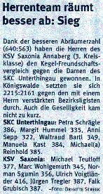 ...wurden durch den KSV Saxonia Annaberg die diesjährigen Ortsmeisterschaften der Sektion Kegeln des SV "Pöhlatal" Königswalde bei den Herren bestritten.